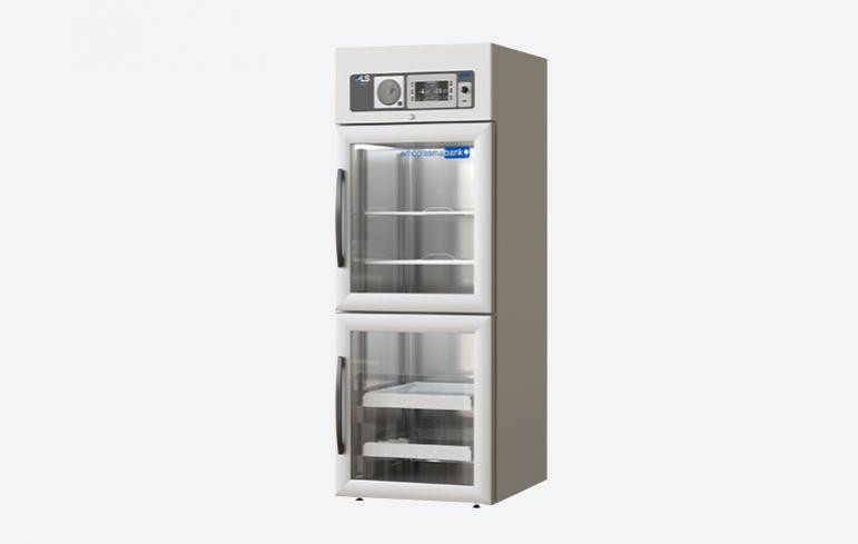 - 700 litros combinados, con dos compartimentos de 350 litros cada uno, uno a + 4 ° C y otro a -20 ° C (mod. Emoplasmabank 700)