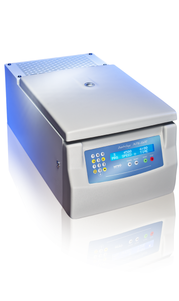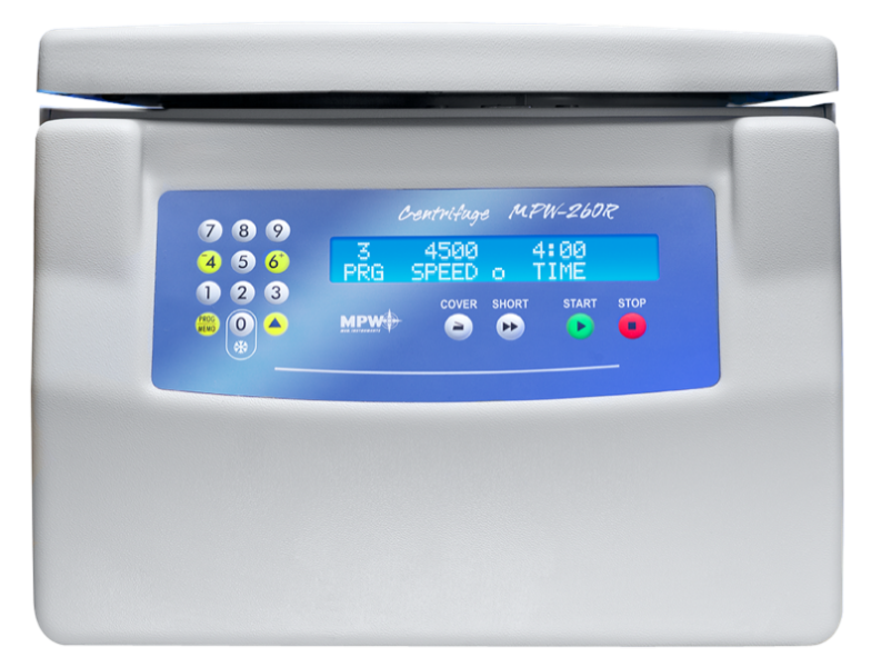 La Centrifuga MPW 260RH Universal de laboratorio de sobremesa refrigerada y calefactada.