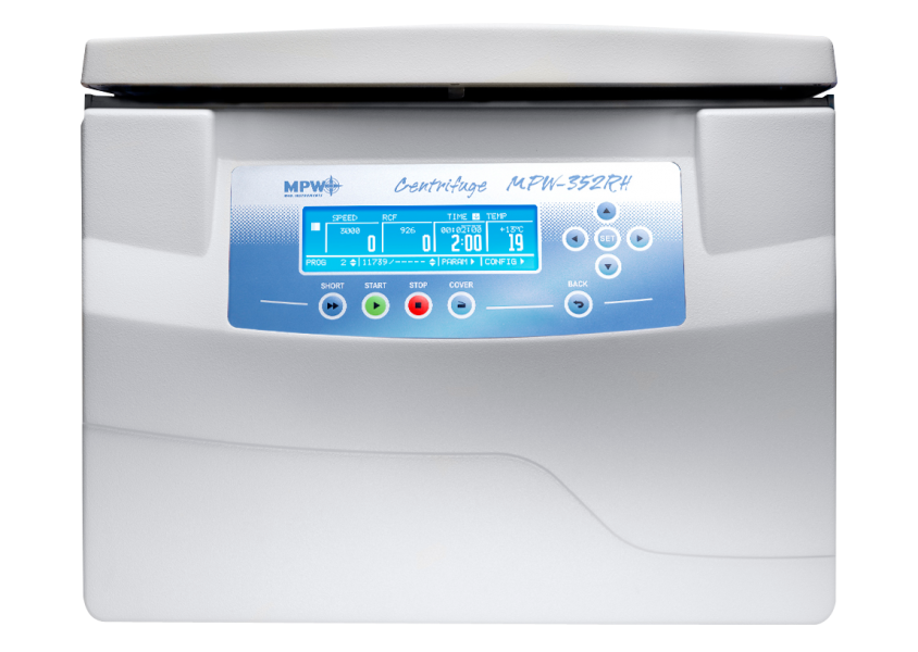 The MPW 352RH model is a refrigerated and heated desktop laboratory centrifuge. It find application in medical, biochemical, veterinary, industrial as well as other laboratories. The construction of the centrifuge is based on the broad experience of the MPW Med instruments company and its many years of cooperation with laboratories and medical institutions.
