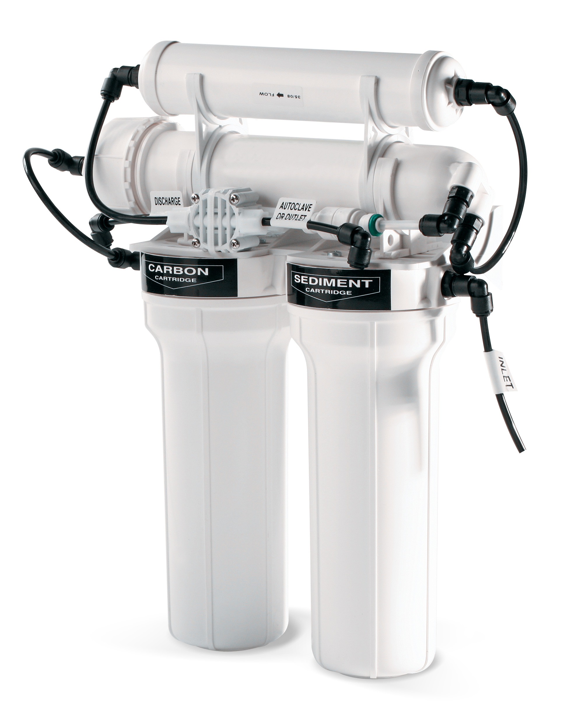 El sistema está formado por un cartucho para la purificación del agua de entrada, por un filtro de carbón activo para la purificación biológica, por una membrana osmótica para la limpieza de agua y un cartucho de proceso lleno de catiónico y aniónico de grado nuclear, para la purificación final completa del agua, que está fuertemente desmineralizada a la salida del sistema. Todos los filtros y el cartucho se deben cambiar al menos una vez al año. El kit de purificación de filtro tiene una capacidad de aproximadamente 500 litros de agua (equivalente a alrededor de 1.000 ciclos de esterilización si se utiliza en modelos “Kronos”).